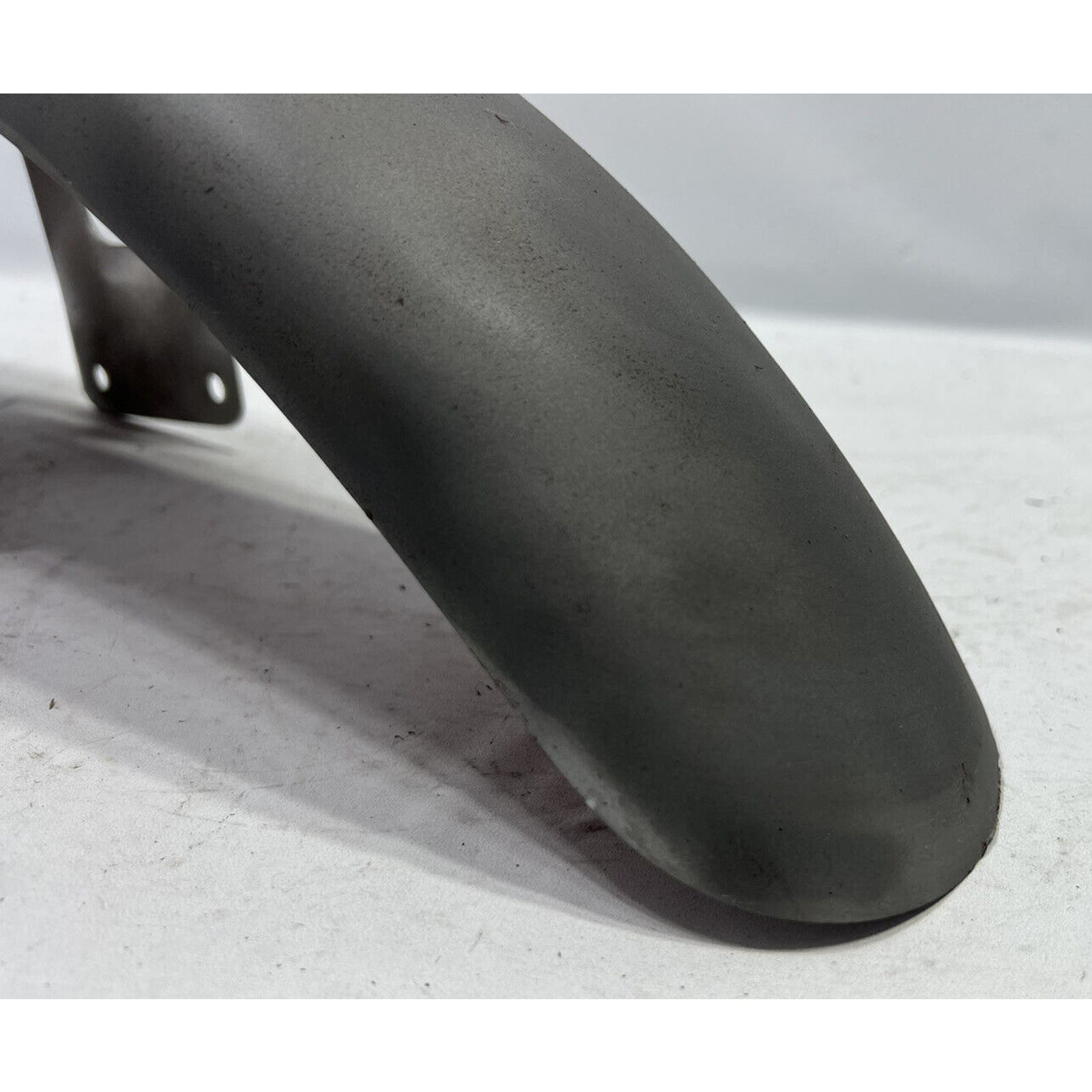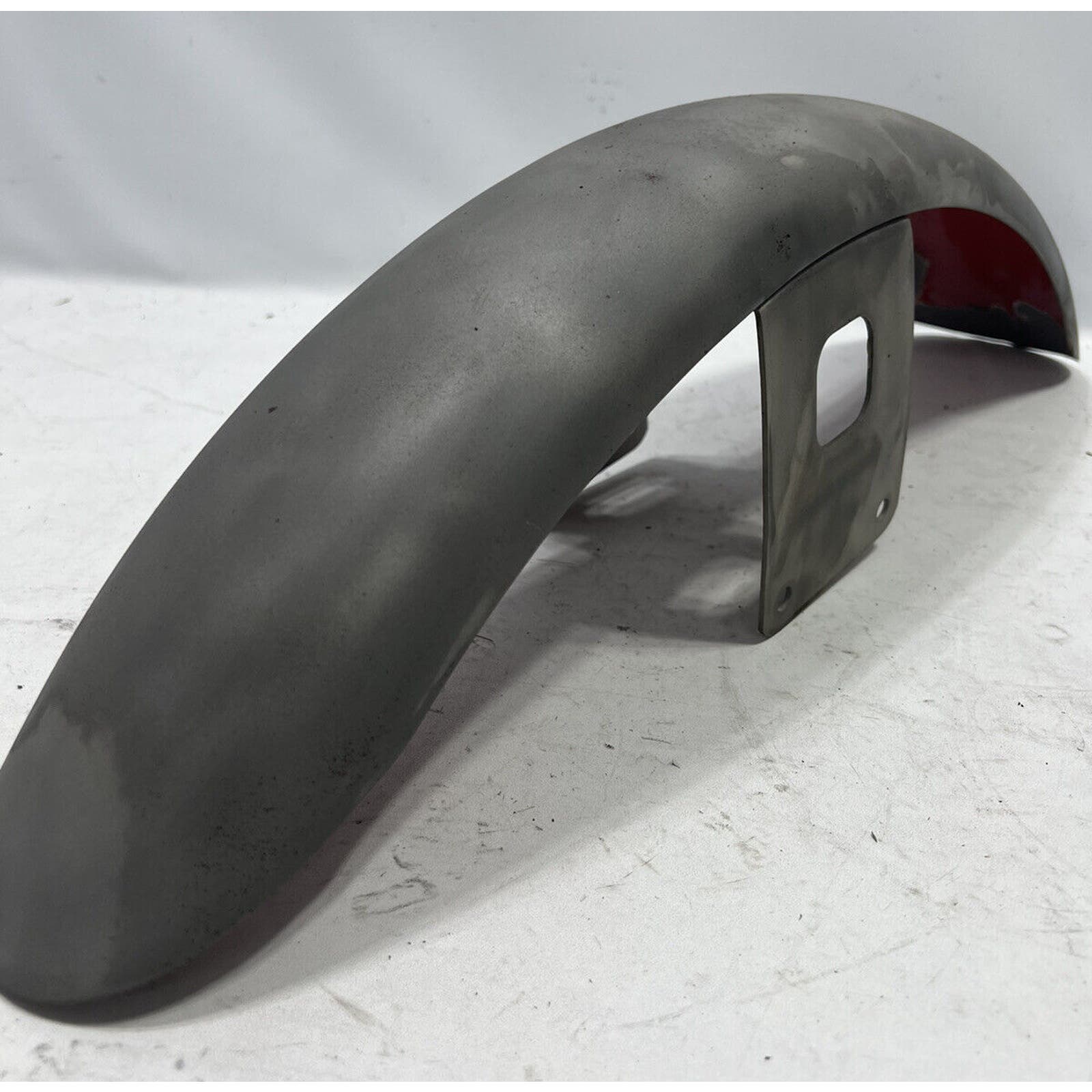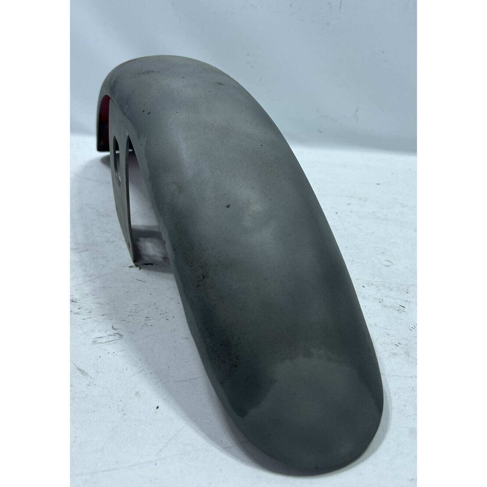 THIS FENDER APPEARS TO HAVE BEEN PRIMERED WITH A RATTLE CAN. NO MAJOR DENTS BUT THERE ARE SOME SMALL ONES. ITS A LITTLE CHEWED ON ONE END. IT IS AN AFTERMARKET FENDER AND WILL REQUIRE BODYWORK/PAINT.