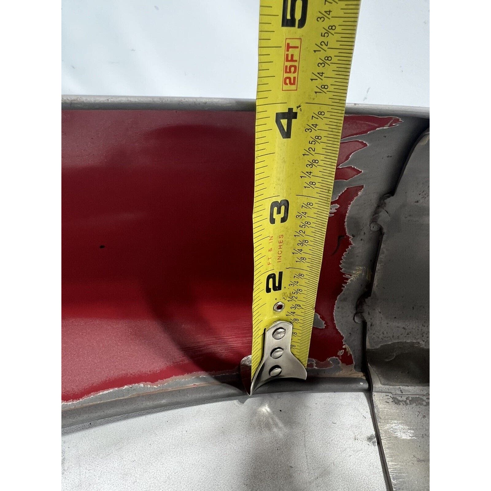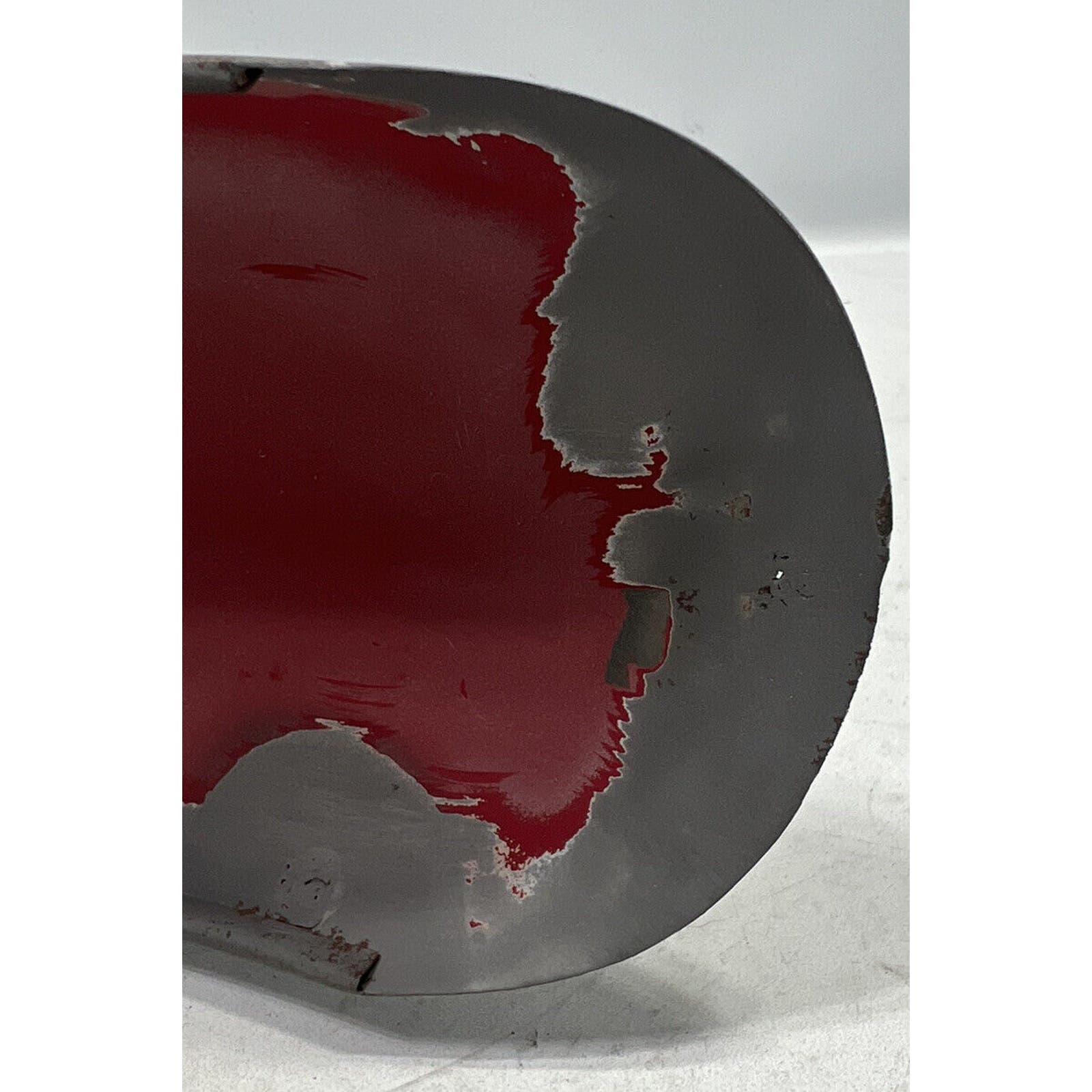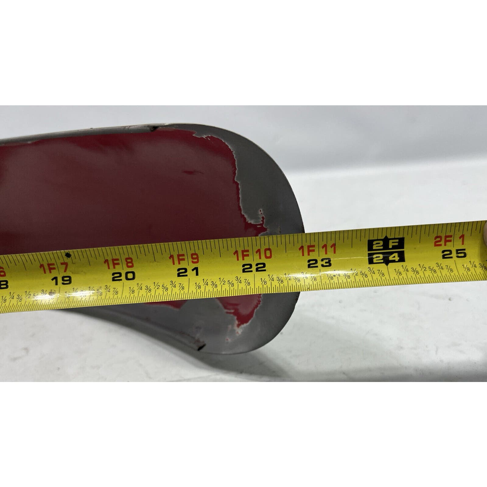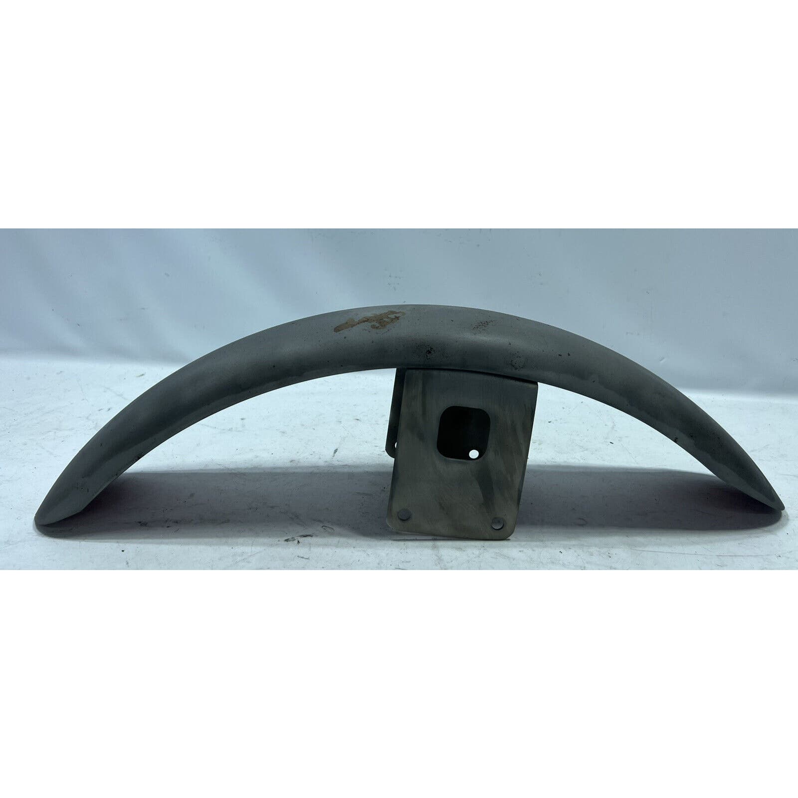 THIS FENDER APPEARS TO HAVE BEEN PRIMERED WITH A RATTLE CAN. NO MAJOR DENTS BUT THERE ARE SOME SMALL ONES. ITS A LITTLE CHEWED ON ONE END. IT IS AN AFTERMARKET FENDER AND WILL REQUIRE BODYWORK/PAINT.