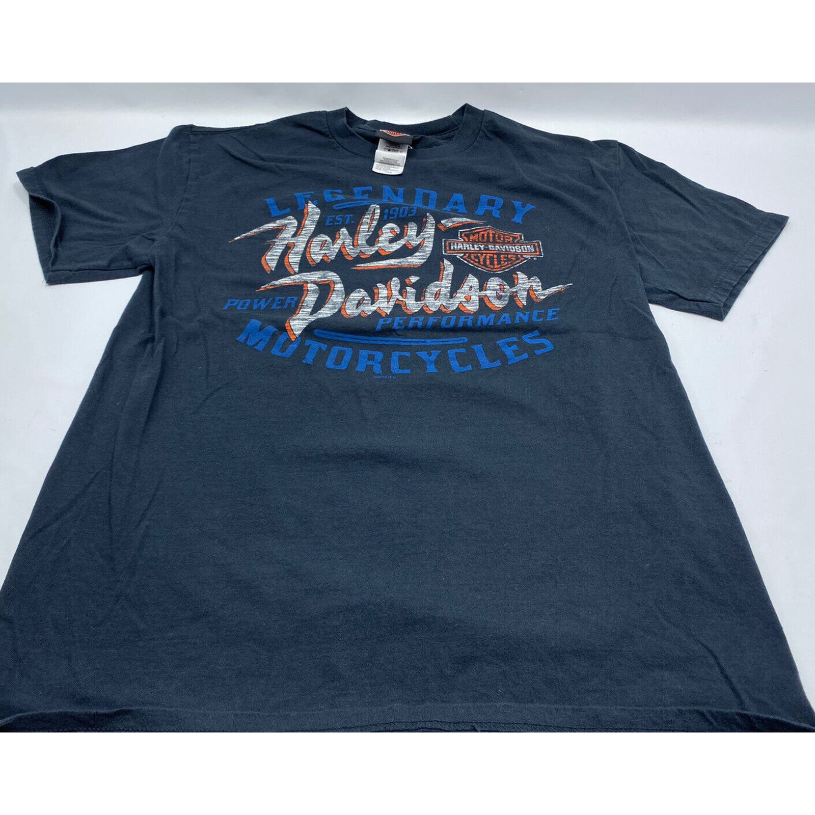 Harley Men’s Shirt Large L Sacramento Short Sleeve Black Legendary Orange Blue