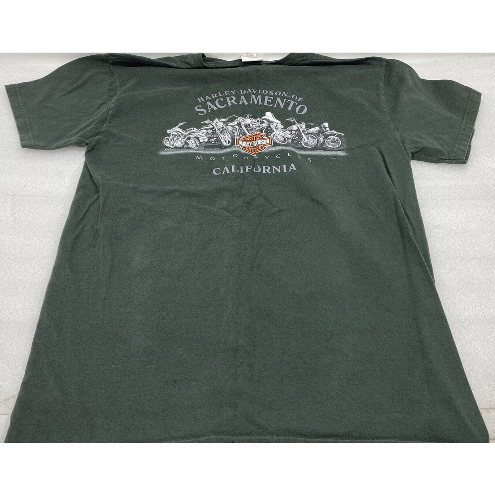 This is for a Men’s size large Harley Davidson shirts. It is short sleeved and has a Sacramento graphic on the back. . As a Preowned item it may show signs of wear. Overall in good condition. See pics for condition. Some minor defects, we captured them In photos. Zoom on pics for detail.