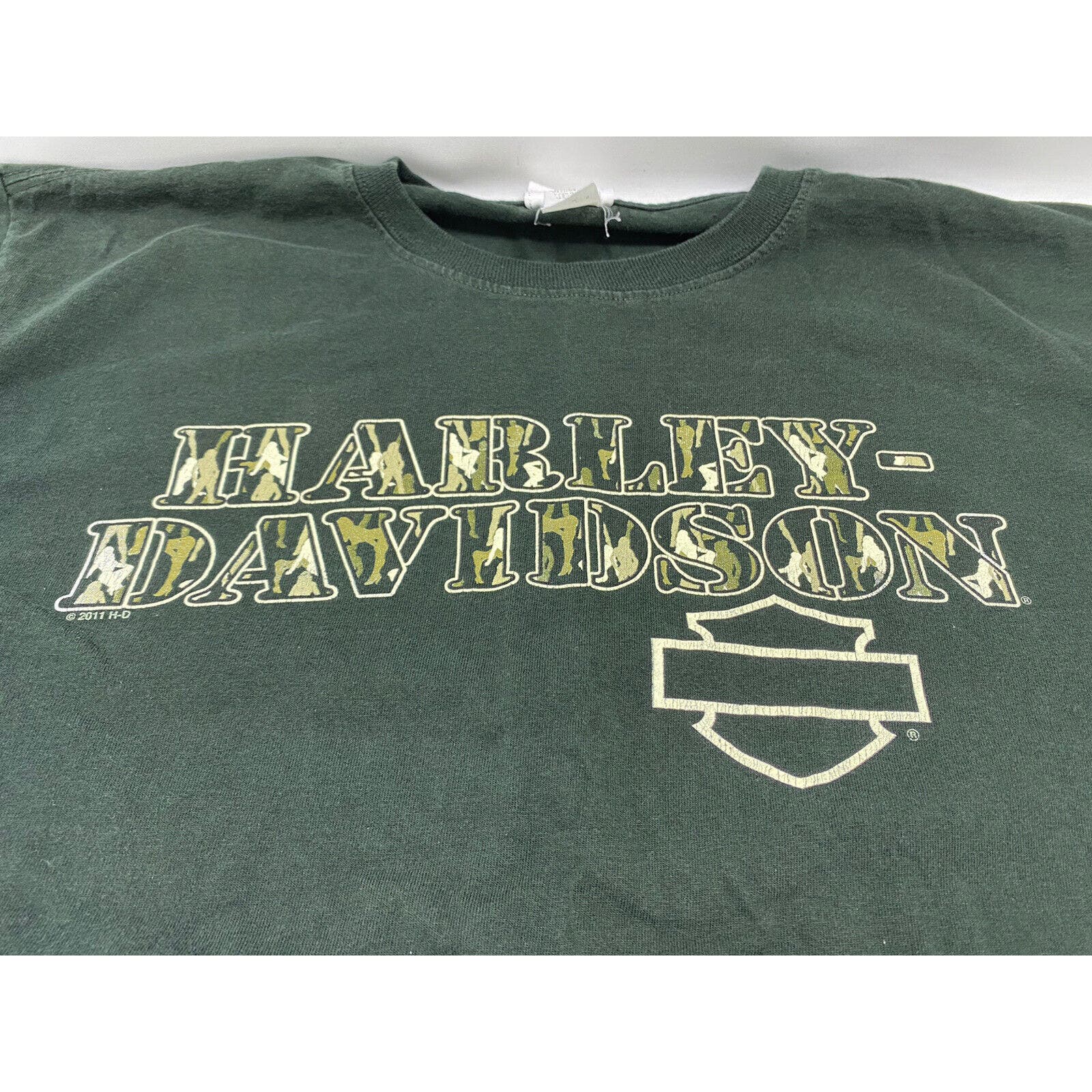 Harley Men’s Shirt Large Sacramento T-shirt Green Lady Camo Camouflage Woman