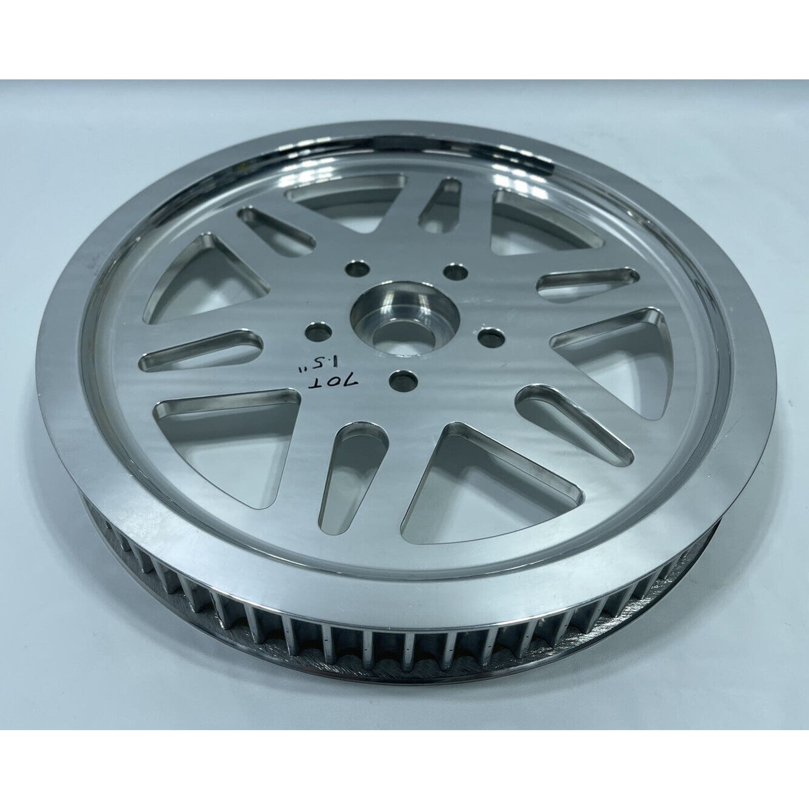 NOS 70t 1.5” POLISHED BILLET REAR DRIVE PULLEY HARLEY CUSTOM CHOPPER 12 SPOKE.