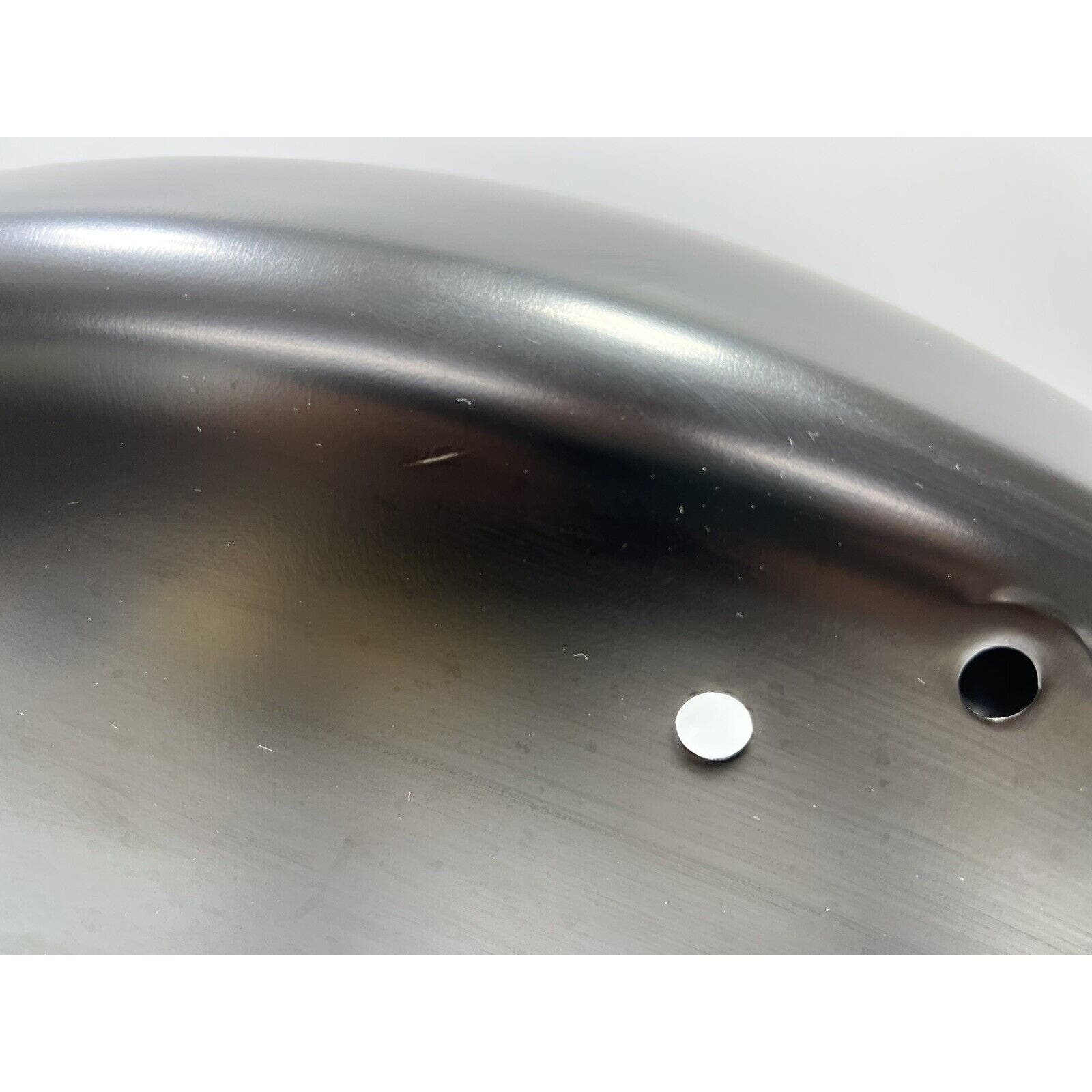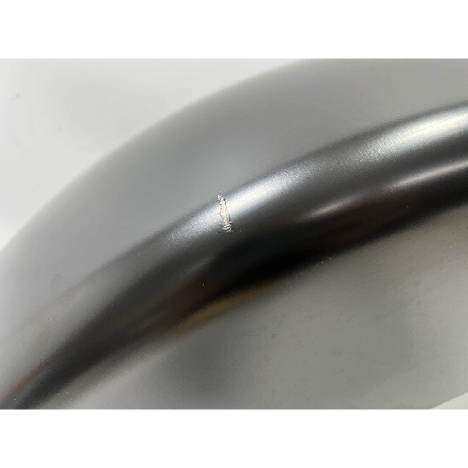 See pics for condition. This is a new old stock front fender. It is primered. There are a couple small blemishes and one small DENT from storage, see photos. It was removed from factory sealing for photos and to check condition.