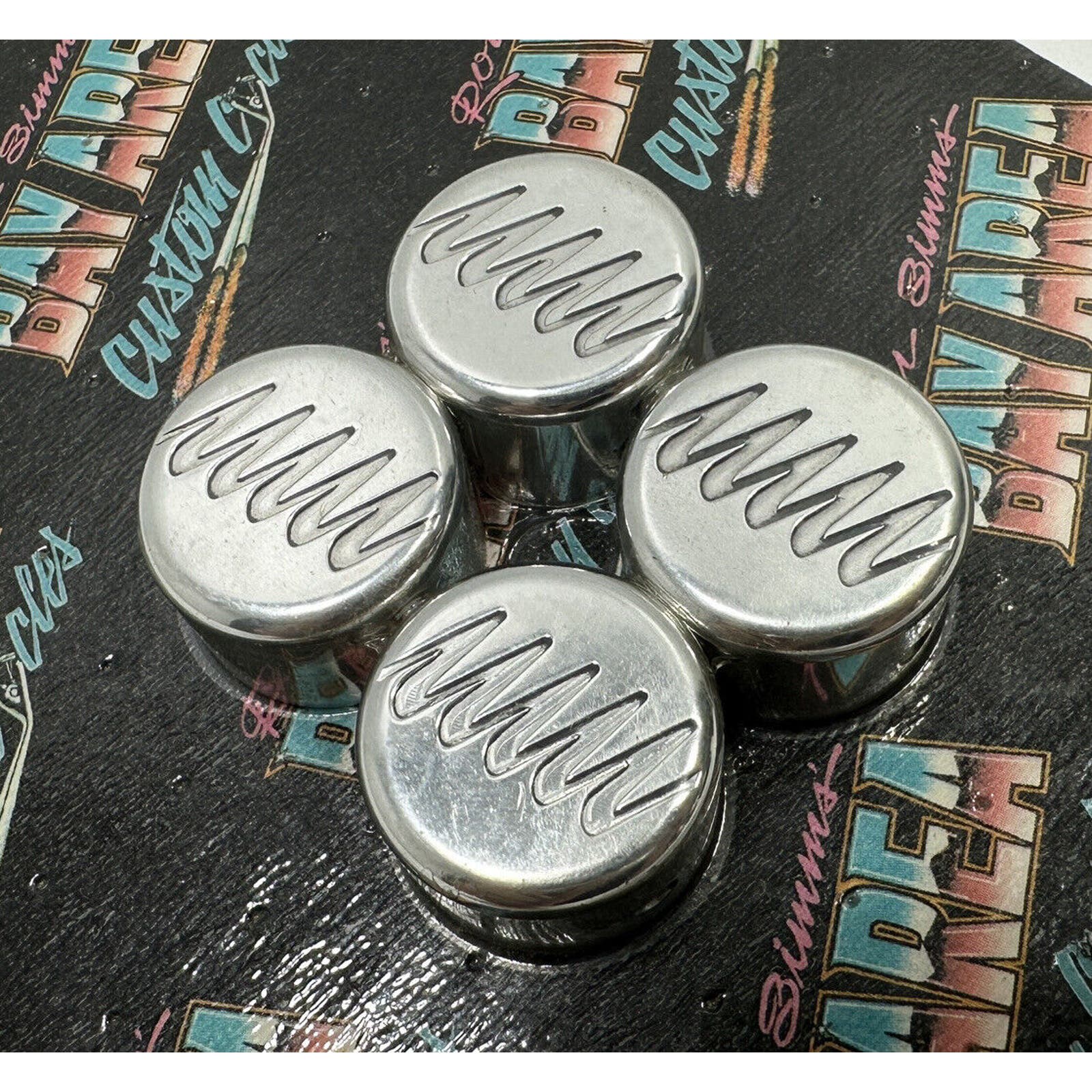 RONS SIMMS BACC POLISHED SCALLOP ENGINE HEAD BOLT COVERS CAPS HARLEY CUSTOM.