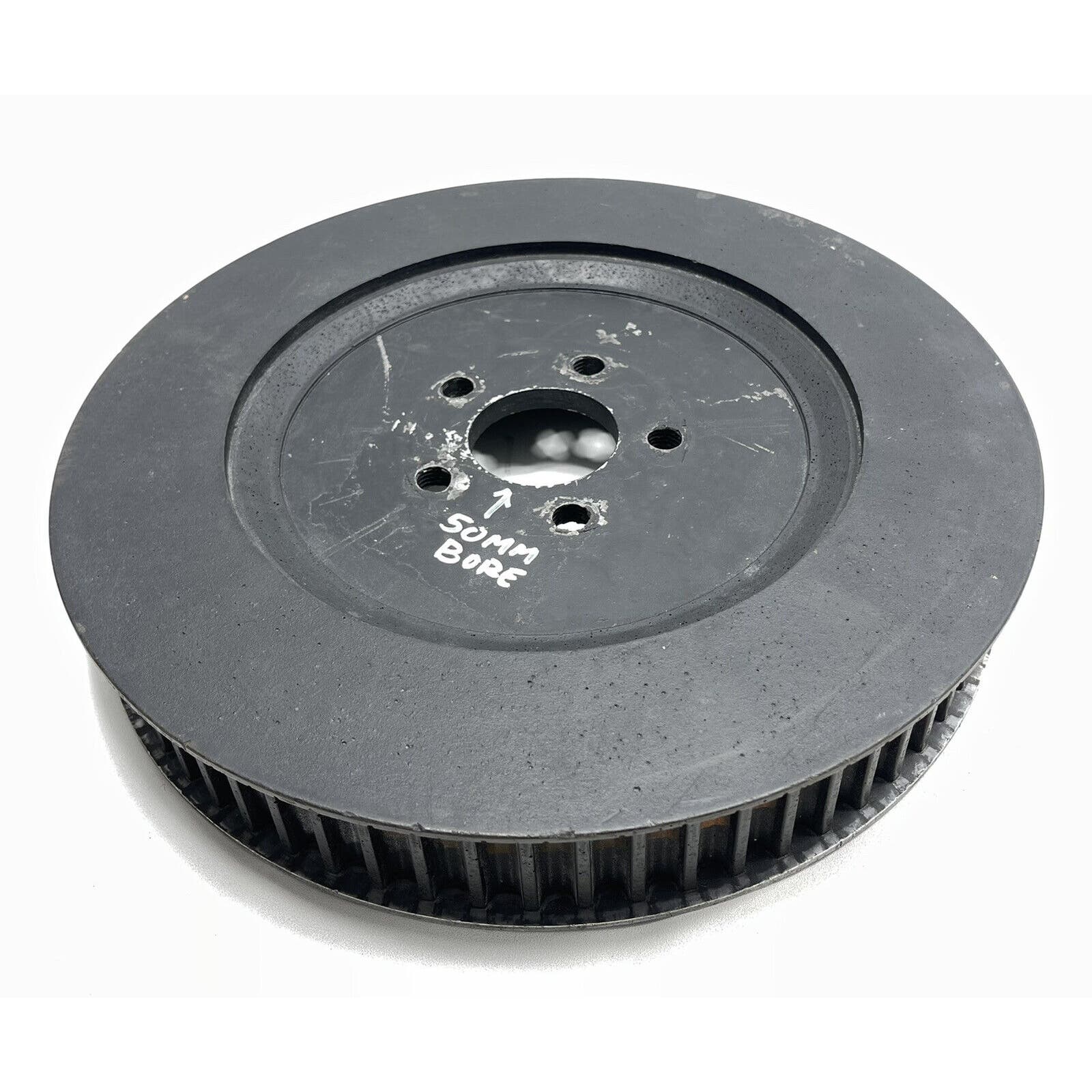 “USED ITEM- SHOWS SIGNS OF WEAR FROM USE. THIS LOOKS TO BE A 68 TOOTH CUSTOM MADE PULLEY BY SUPER MAX. NOT SURE IF IT WAS FOR A HARLEY TRIKE OR A MORGAN CAR. MARKINGS SAY - “14mm”, “68”, “48”. IT IS FOR 1.5” WIDE BELT. IT HAS A 50mm CENTER BORE. LOOKS LIKE THE BOLT HOLES ARE A LITTLE WALLERED. (Yes, that’s a technical term. 😜)”