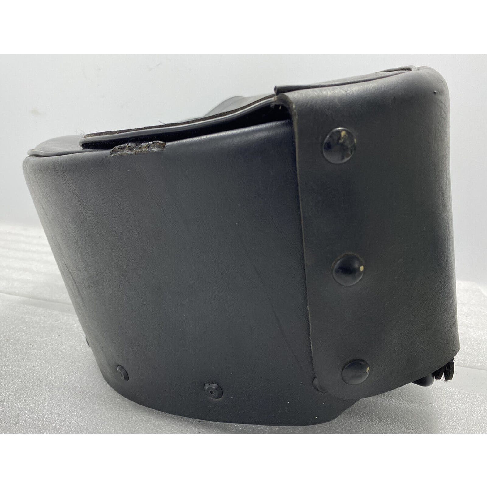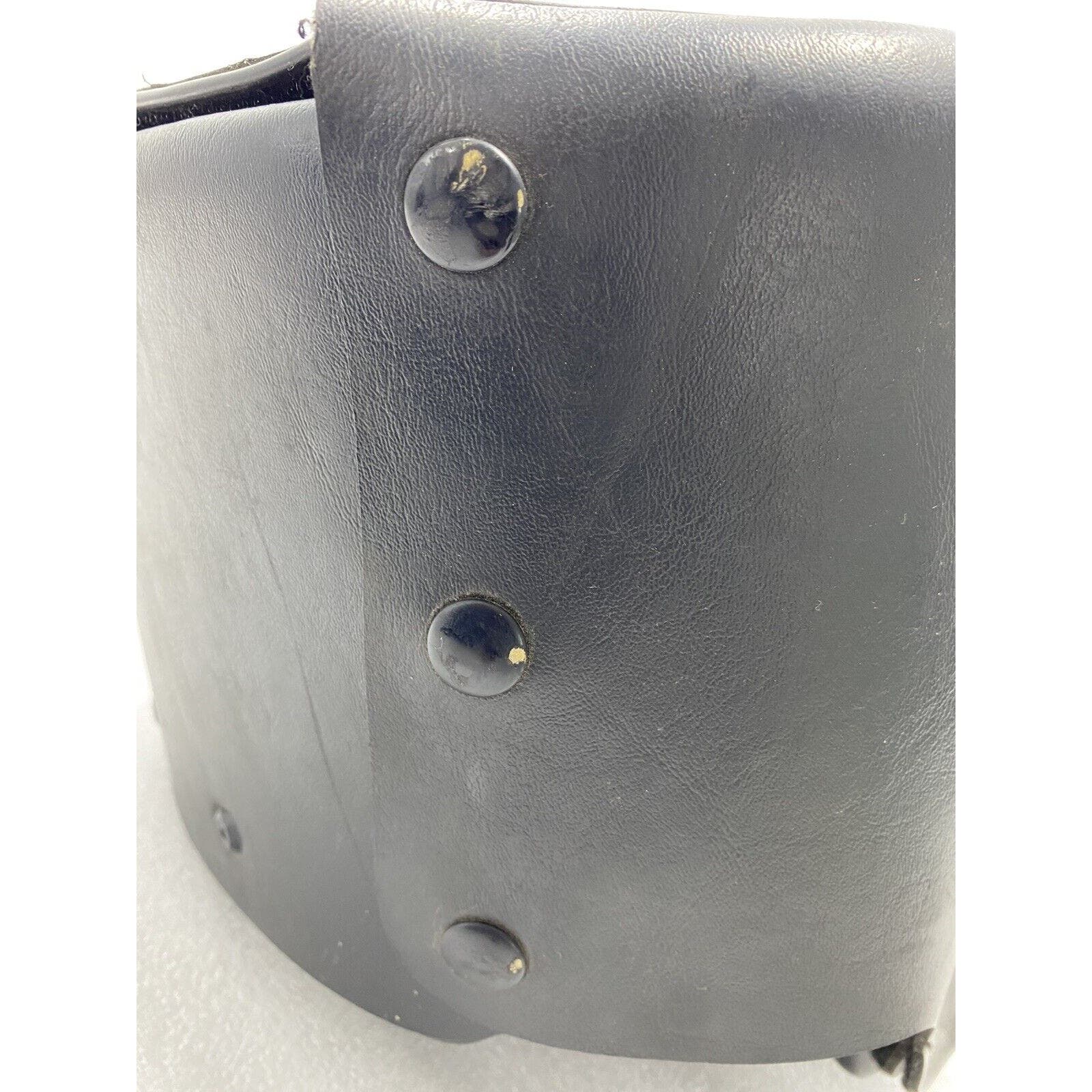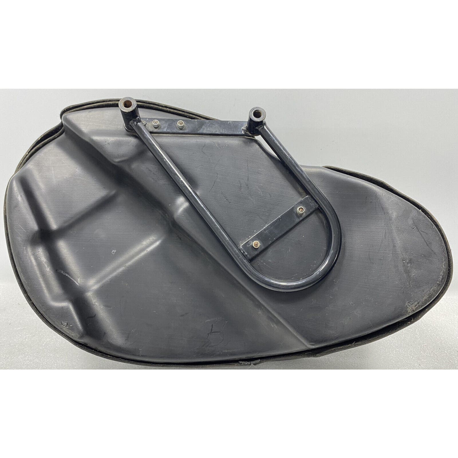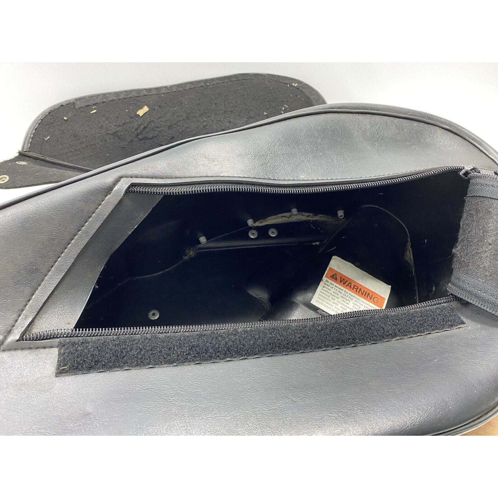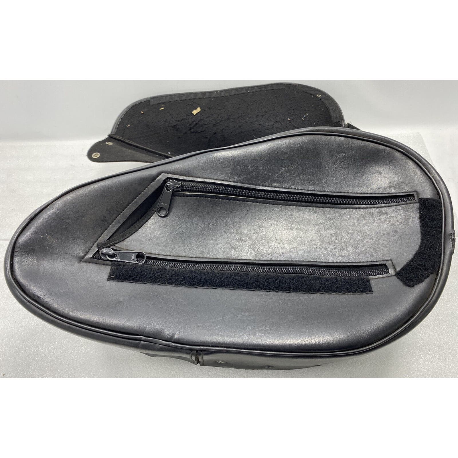 “ THIS IS A USED RIGHT SIDE (AS YOU ARE SITTING ON THE BIKE) SADDLE BAG. NO ADDITIONAL HARDWARE IS INCLUDED. THIS BAG HAS MAJOR IMPERFECTIONS AND SHOWS SIGNS OF WEAR. THE LEATHER IS SOFT AND THE SNAPS AND ZIPPERS ARE FUNCTIONAL. THERE IS SOME FADING AND STAINING ON THE FRONT AND SOME SCRATCHES ON THE TOP OF THE BAG... PLEASE ZOOM IN ON THE PICTURES FROM A COMPUTER TO SEE DETAIL.”