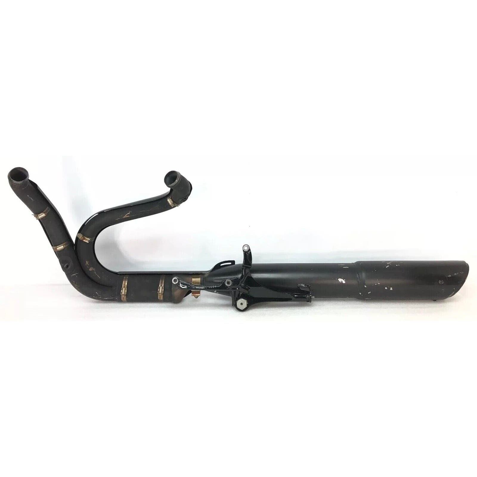“SHOWS SIGNS OF WEAR FROM USE. HAS FLAKING/CHIPPING/IMPERFECTIONS. ZOOM ON PICTURES FROM A COMPUTER (NOT YOUR PHONE) TO SEE DETAIL. THIS EXHAUST SYSTEM USES THE FACTORY HARLEY HEADPIPE (CATALYTIC CONVERTER IS STILL IN TACT). THIS EXHAUST COULD USE FRESH PAINT/POWDERCOAT/CERAKOTE.”