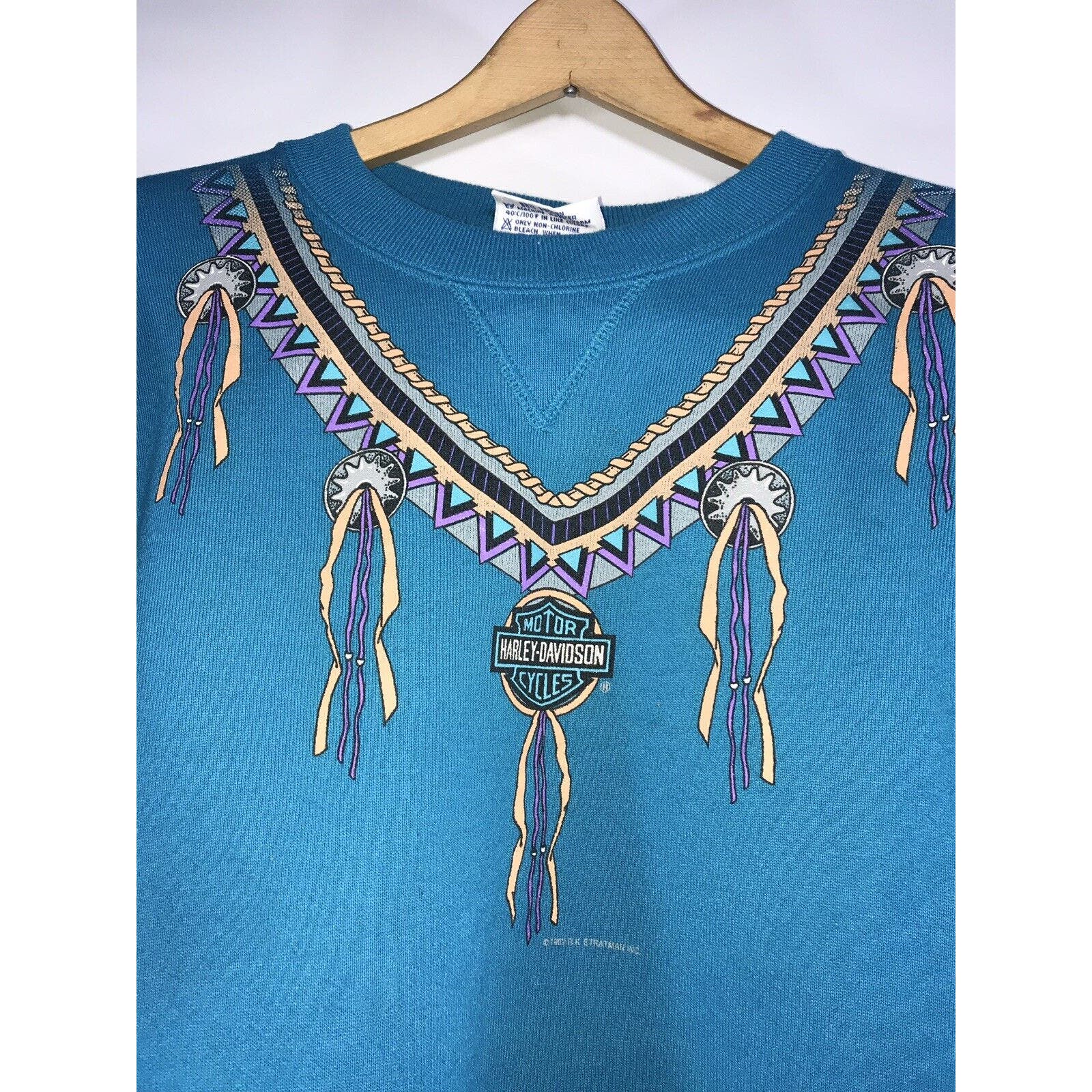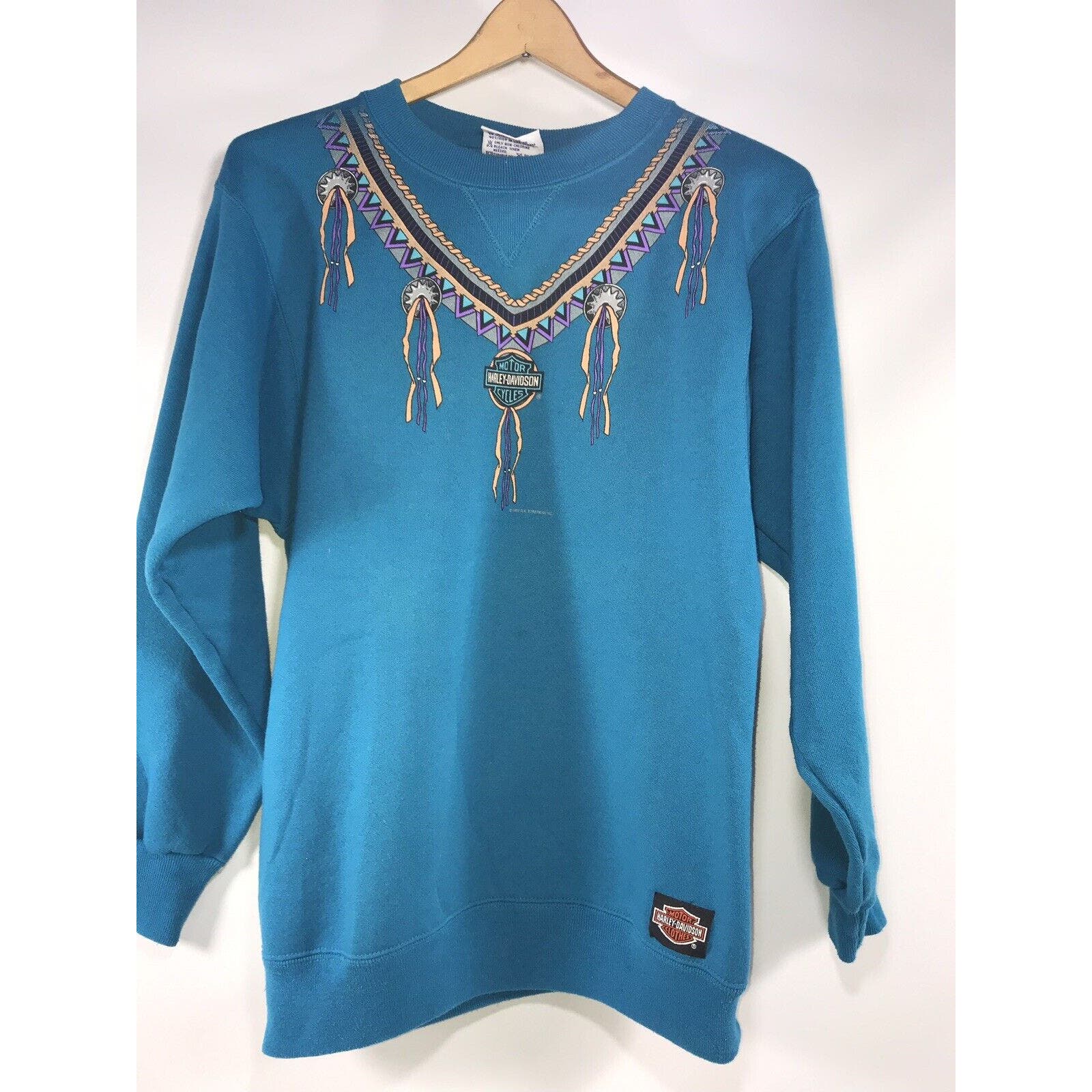 Vintage 1980s Harley Davidson Womens Sweatshirt Shirt M Teal Blue 1989